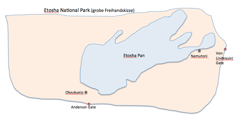 Etosha Karte Freihand Veröffentlicht 3. Oktober 2017 in 756 × 383 in Afrika 2017 – Namibia, Botswana und Simbabwe – 3 Wochen mit vielen Eindrücken von Tieren, Menschen, Landschaften ← Zurück