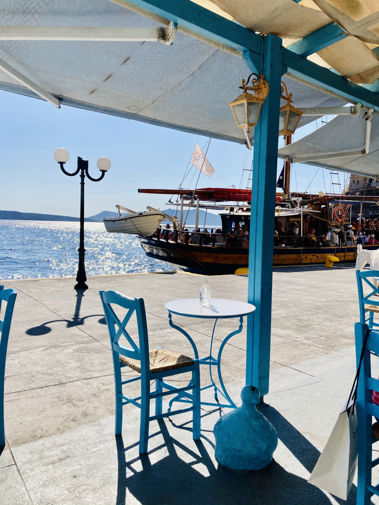Nur an dieser Stelle eine kurze Anmerkung zu den Preisen auf Santorini. Nichts gibt es hier umsonst. Und gar nicht typisch griechisch, wissen die Santoriner hervorragend um die vielfältigen Möglichkeiten der Preisgestaltung. Aber der Tourist der hierher kommt sollte das nicht zu krumm nehmen. Wann urlaubt man schon mal auf einem Vulkan. Allerdings, 2 kleine Aperol Spritz und ein geteiltes Stück Kuchen für 51€, das hatten wir selbst in München noch nicht 🙂