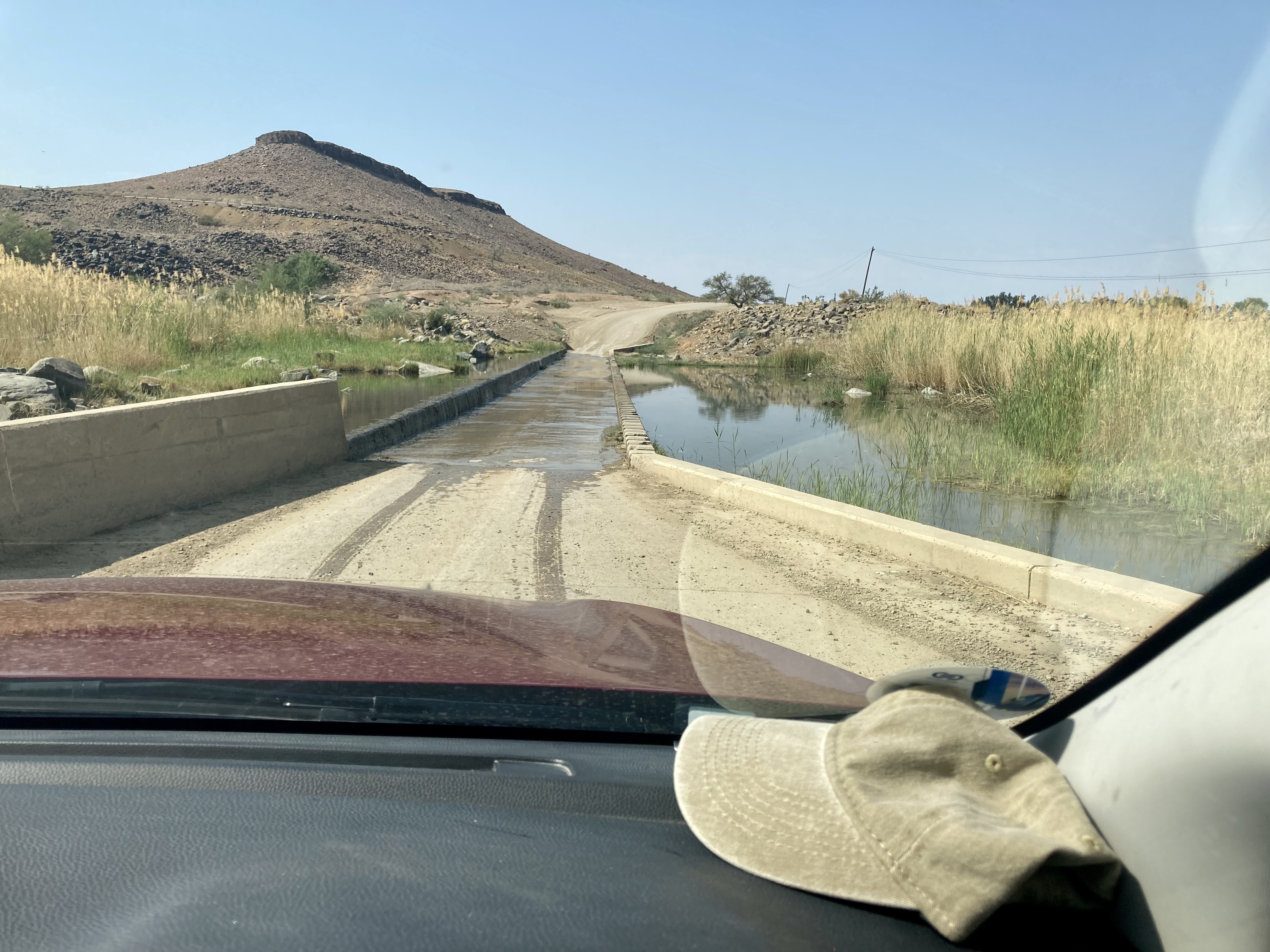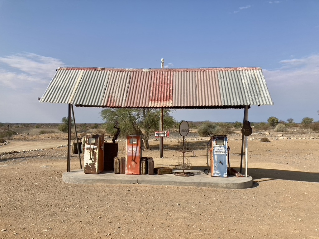Kurz vor der winzigen Ansiedlung Gorges müssen wir von der C12 nach Westen abbiegen auf die C37, Richtung Hobas. Am Canyon Roadhouse geht es vorbei. Das Canyon Roadhouse werden wir später noch schätzen lernen. Es gibt hier Lebensmittel, ein kleines Restaurant, Souvenirs, aber vor allem Sprit. Tankstellen sind rar gesät und es gehört zur täglichen Übung sich einen Plan zu machen, wo man tanken kann. Und zum Plan A am besten auch einen Plan B, denn es wird sich zeigen, dass nicht jede verzeichnete Tankstelle auch wirklich offen ist und Sprit hat.