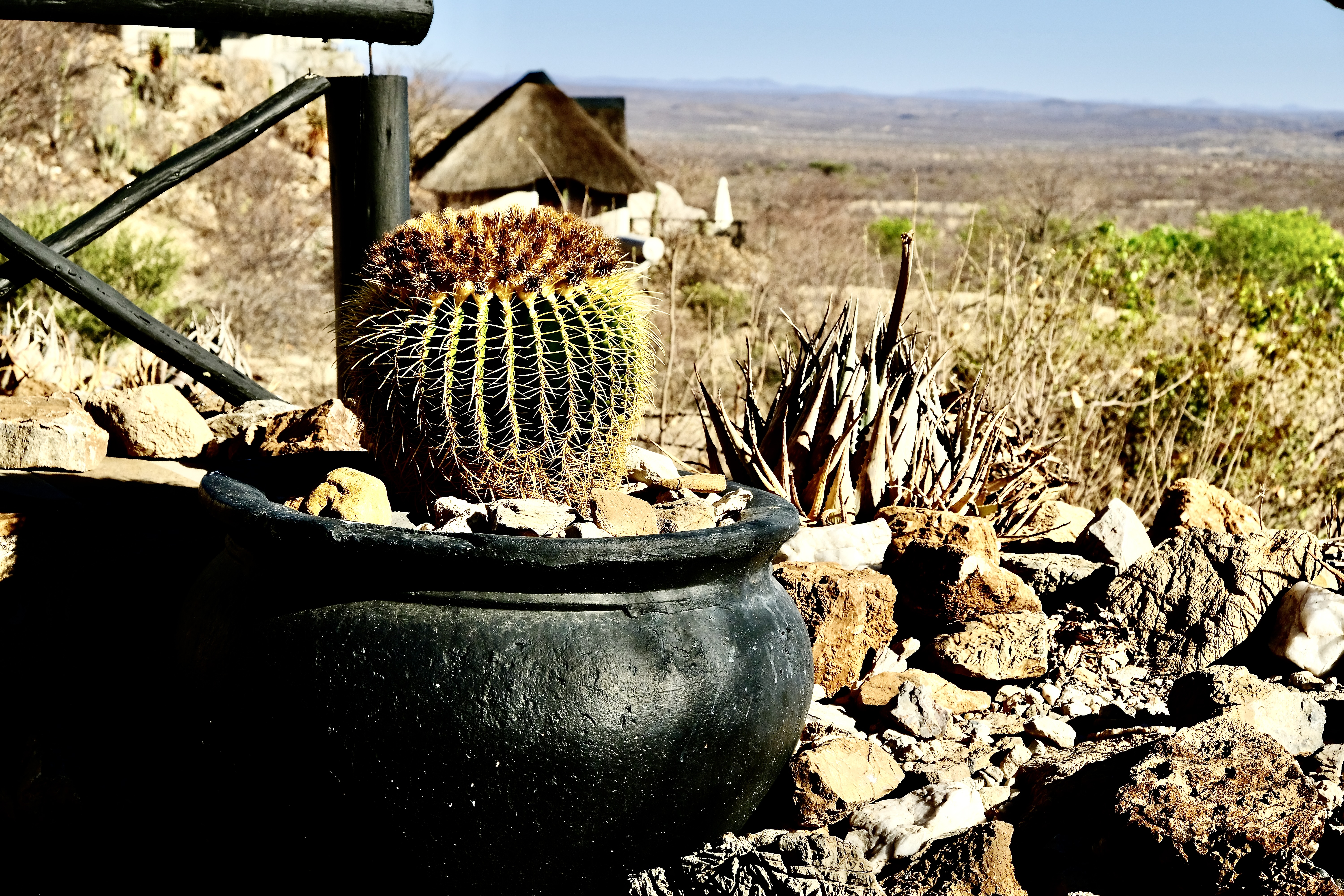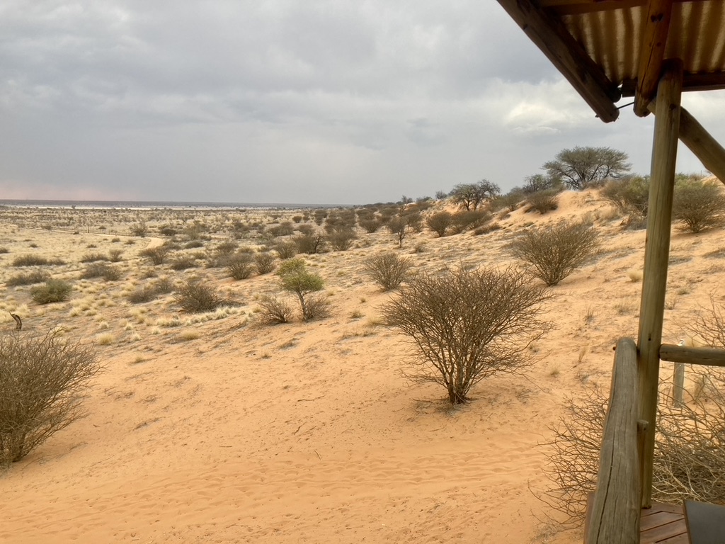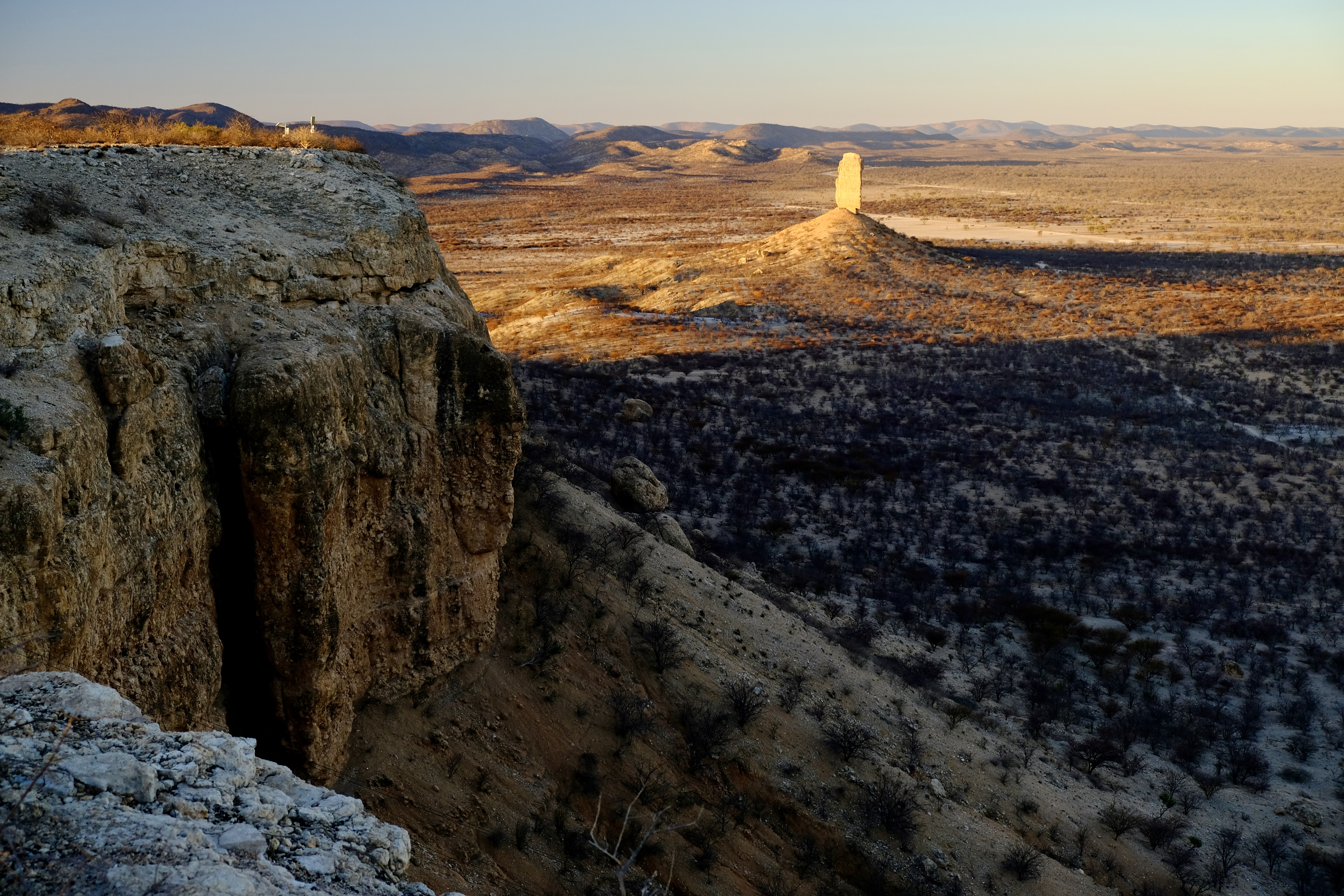 Das Gepäck vom Auto zur Hütte hoch zu schleppen ist nicht der reine Spaß, aber der Ausblick von dort oben entlohnt uns dafür. Die Steppenlandschaft des Kalahari-Ausläufers unter uns ist unser erster Eindruck von dem was wir in den nächsten gut 2 Wochen erleben werden.