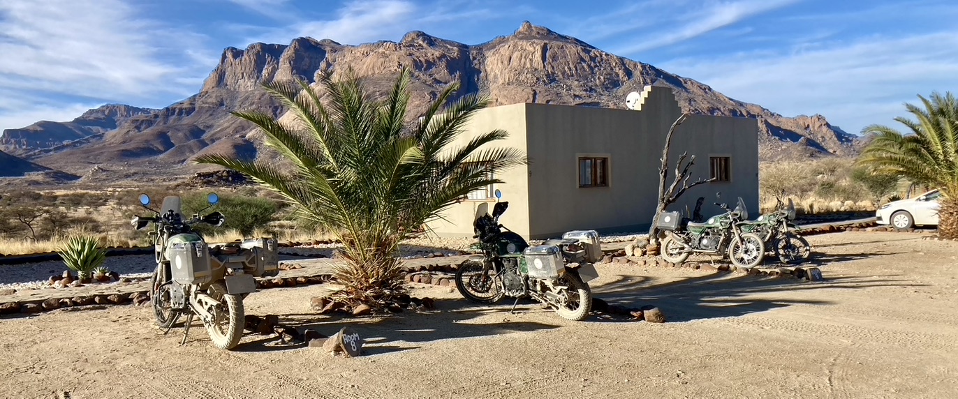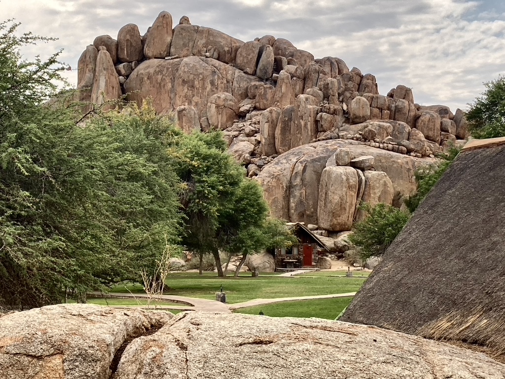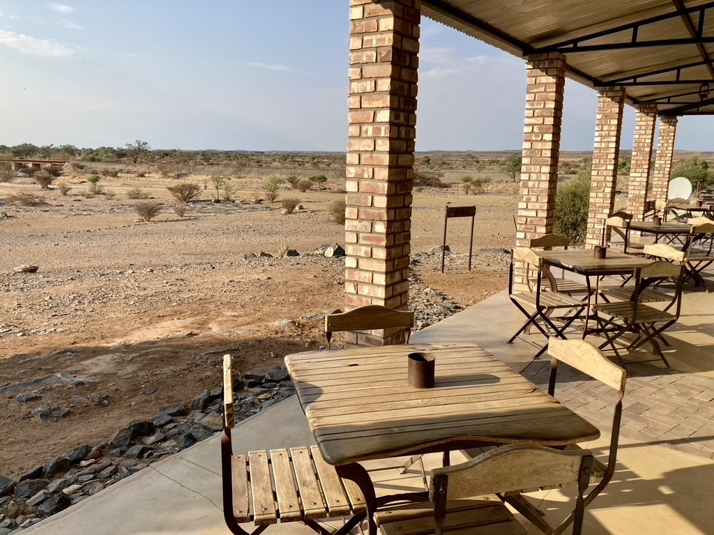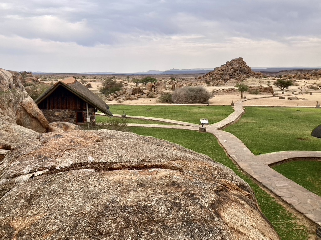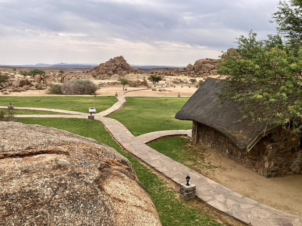 Nach dem langen Flug und der kurzen Nacht in Doha haben wir für den ersten Tag keine lange Etappe geplant, sondern bleiben in der Teufelskrallen Lodge, knapp 200km vom Flughafen nach Süden über Nacht.