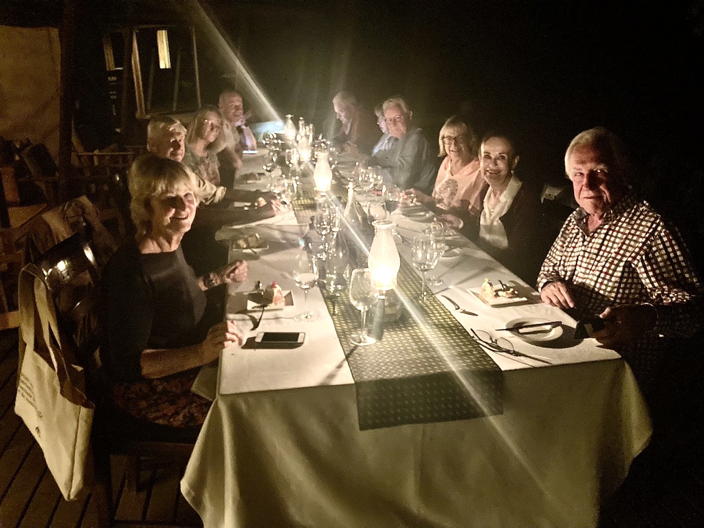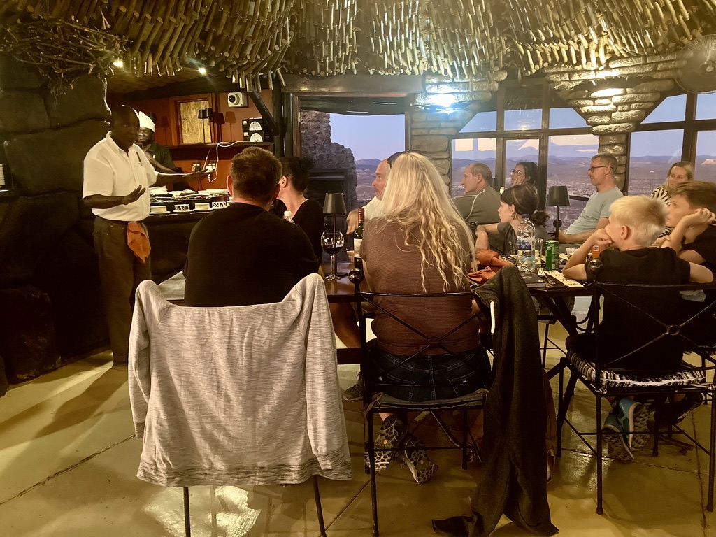 Zum Abendessen treffen sich die 8-10 Gäste von Wolwedans in kleinster Runde. Und rund genauso viele Angestellte kochen für uns, bewirten uns und sie singen für uns!