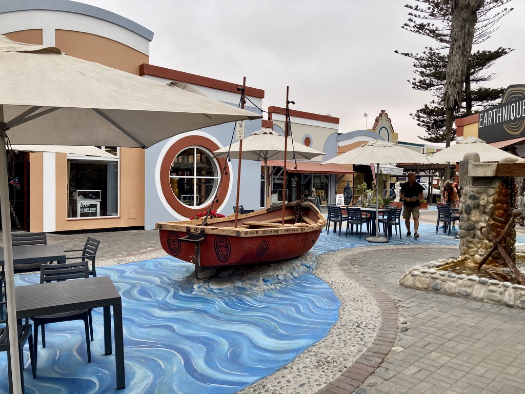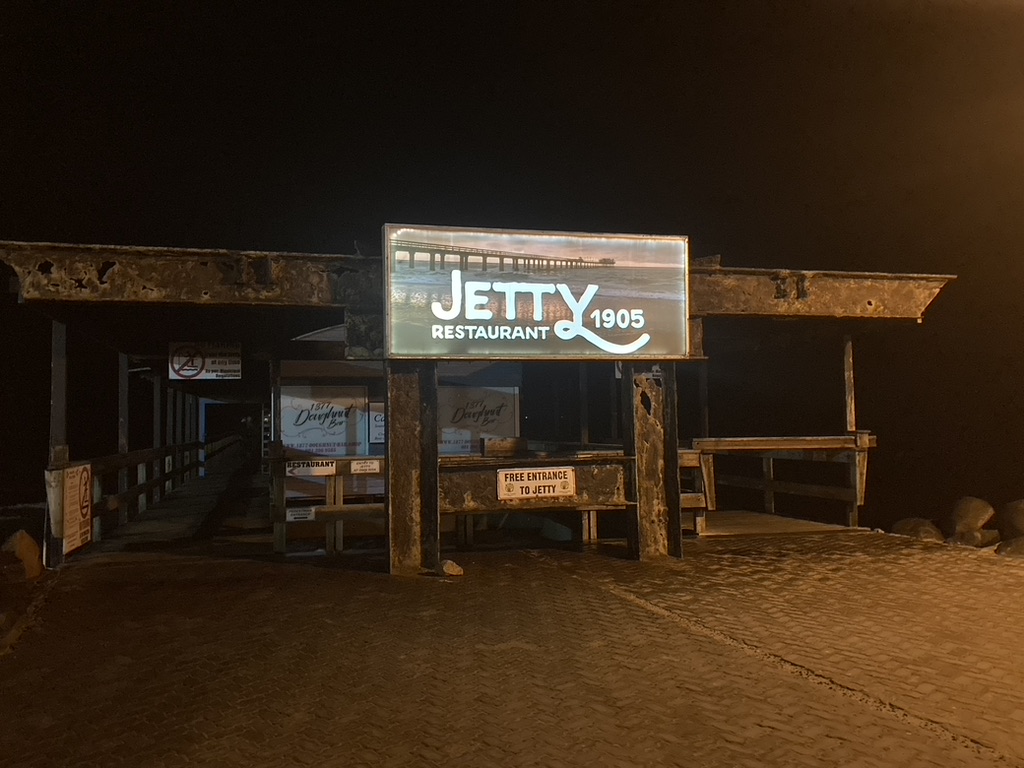 Die Stadt sieht sicher aus und hat viele Shops, Banken, Restaurants, Apotheken. Abends essen wir im The Tug. Gutes Essen und ein volles Restaurant.