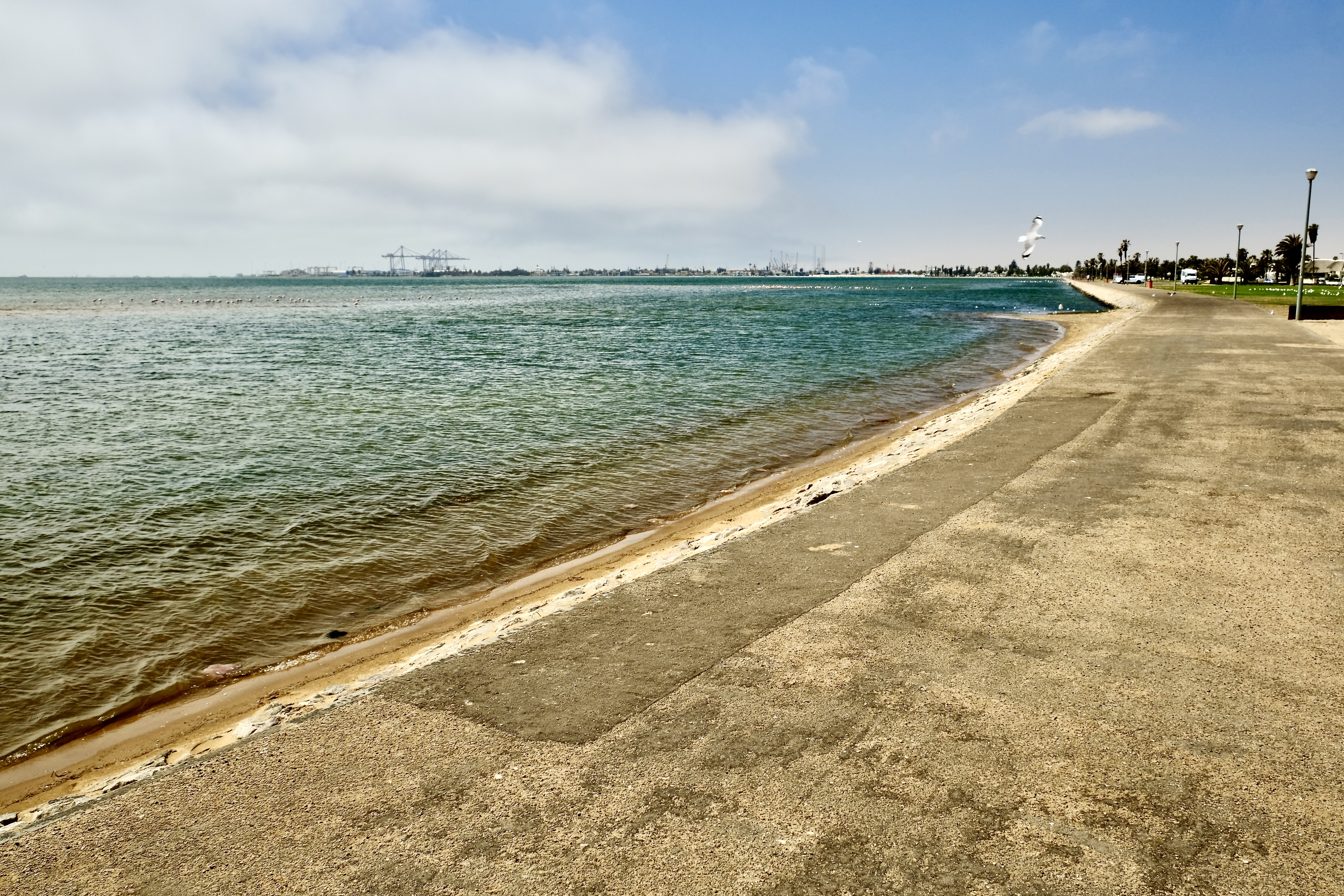 Walvis Bay ist eingebettet von Dünen. Schön anzusehen, viele Flamingos im Meer, aber ansonsten kalt und für uns nicht besonders aufregend.