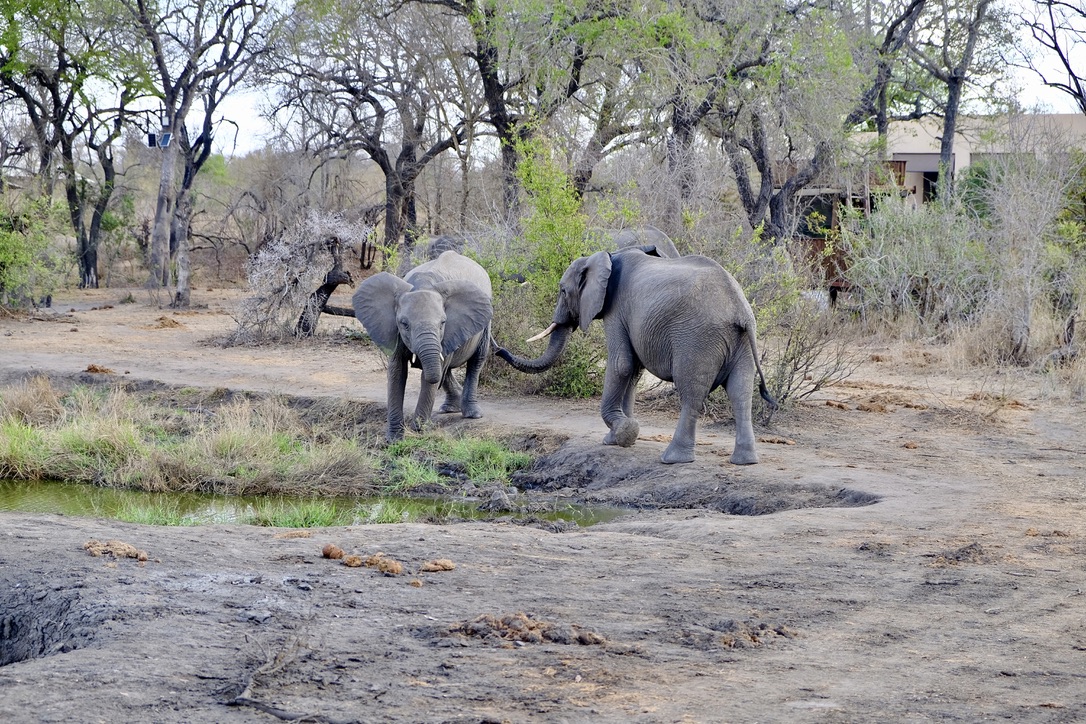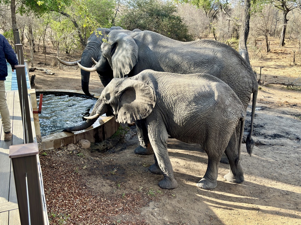 Wir sind in Afrika. Am kleinen Pool beim Haupthaus steht ein Elefant und trinkt. Er möchte wohl auch in den Pool. Das ist nur für uns Touristen besonders. Das Personal hier ist daran gewöhnt. Dass man Abstand hält zu den Elefanten ist selbstverständlich. Elefanten sehen nur behäbig aus, sie sind es keineswegs. Dafür sollten wir einige Tage später noch ein gutes Beispiel aus nächster Nähe bekommen.