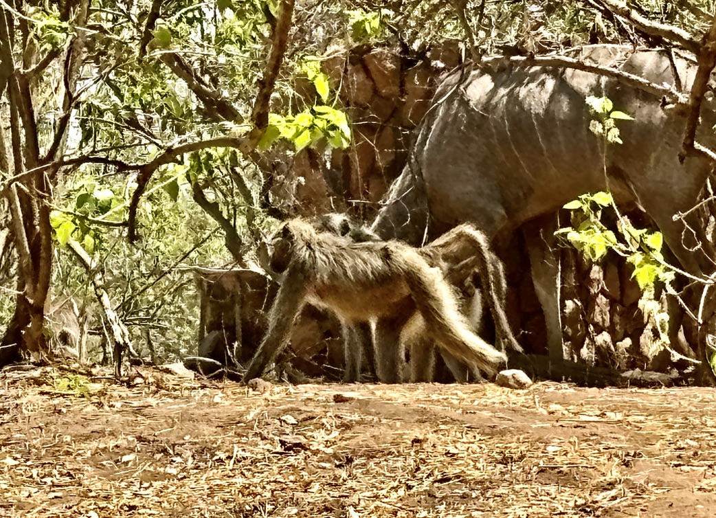 Auch den nächsten Morgen verschlafen wir. Genießen einfach das tolle Lodge, das tolle Frühstück, den Blick. Zählen unten die Affen, die im Flussbett nach Nahrung suchen und die Wildschweine.