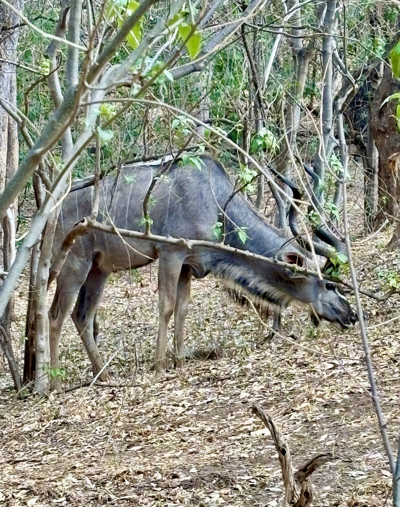 Nachmittags gegen 15 Uhr kommen wir an. Beschließen heute keine Safari mehr zu machen, sondern uns mit einem Gin & Tonic auf die Terrasse zu setzen und einfach nur hinunter auf den Fluss zu schauen. Unterwegs haben wir ja heute bereits alles gesehen: Giraffen, Elefanten, Wildschweine, Kudus, 3 Löwen, Impalas, Hippos. Es war alles dabei. Die Löwen waren am schwersten zu entdecken. Ihre graue Fellfarbe tarnt sie unglaublich gut. Sie gehen zwischen den Buschen und Bäumen völlig unter. Tolle Landschaften, tolle Tiere, und jetzt ein entspannter Blick ins Flusstal mit einem Drink mit Eiswürfeln in der Hand. Geht es noch besser??