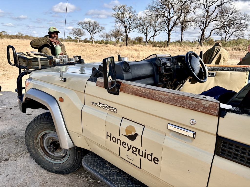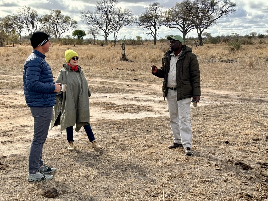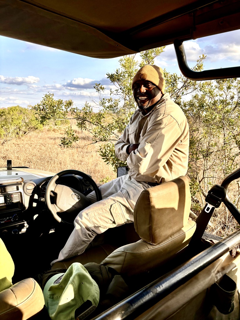 Um 16 Uhr startet der Afternoon Game Drive. Unser Guide Satis ist einer von drei Rangern des Camps, die per Funk in Verbindung stehen und sich gegenseitig Tipps geben um Tiere zu finden.