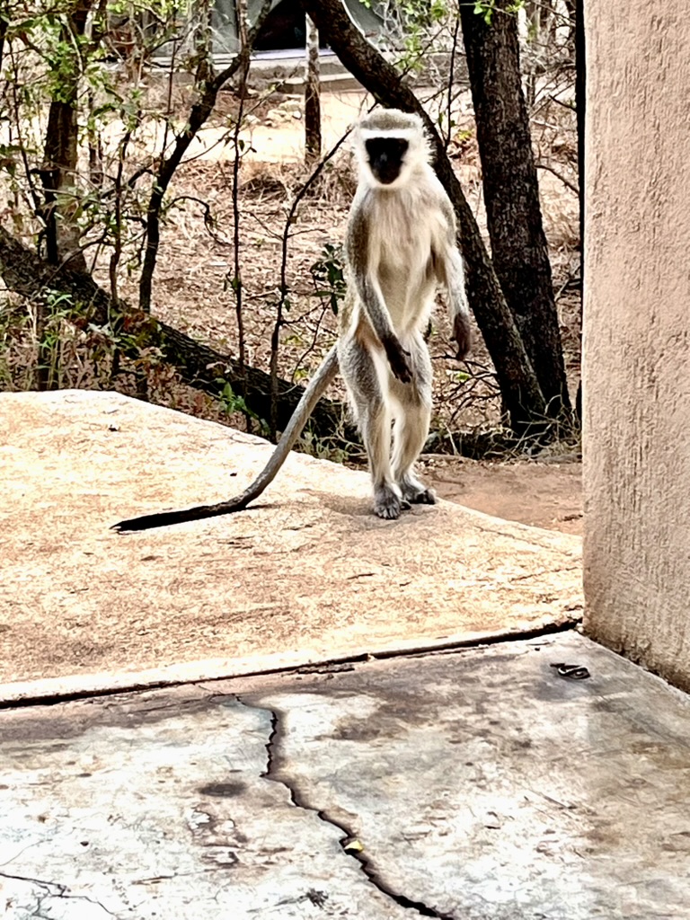 Das Camp besteht aus einem Haupthaus und einigen Zelten darum herum. Wir sind in Zelt 8. Wir bekommen eine Einweisung in die Sicherheitsvorkehrungen. Hauptsächlich gegen die Affen. Die Affen sind überall und sie sind sehr schlau. Sie sind neugierig, hungrig und stehlen alles und probieren alles.