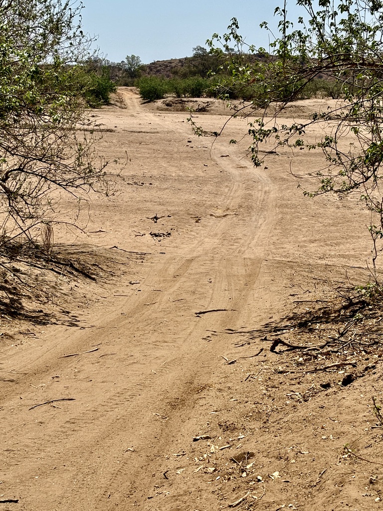 Die ersten 70 km bis zur Grenze sind schlicht grauenhaft. Der botswanische Grenzer sagt selbst „that is no road“. Und da hat er recht. Es ist eine Anhäufung von Löchern, Steinen, Sand mit Spurrillen. Nach der Grenze geht es etwas besser voran. Auch hier Schotterpiste bis zum Horizont. Aber immerhin Schotterpiste auf der wir voran kommen.