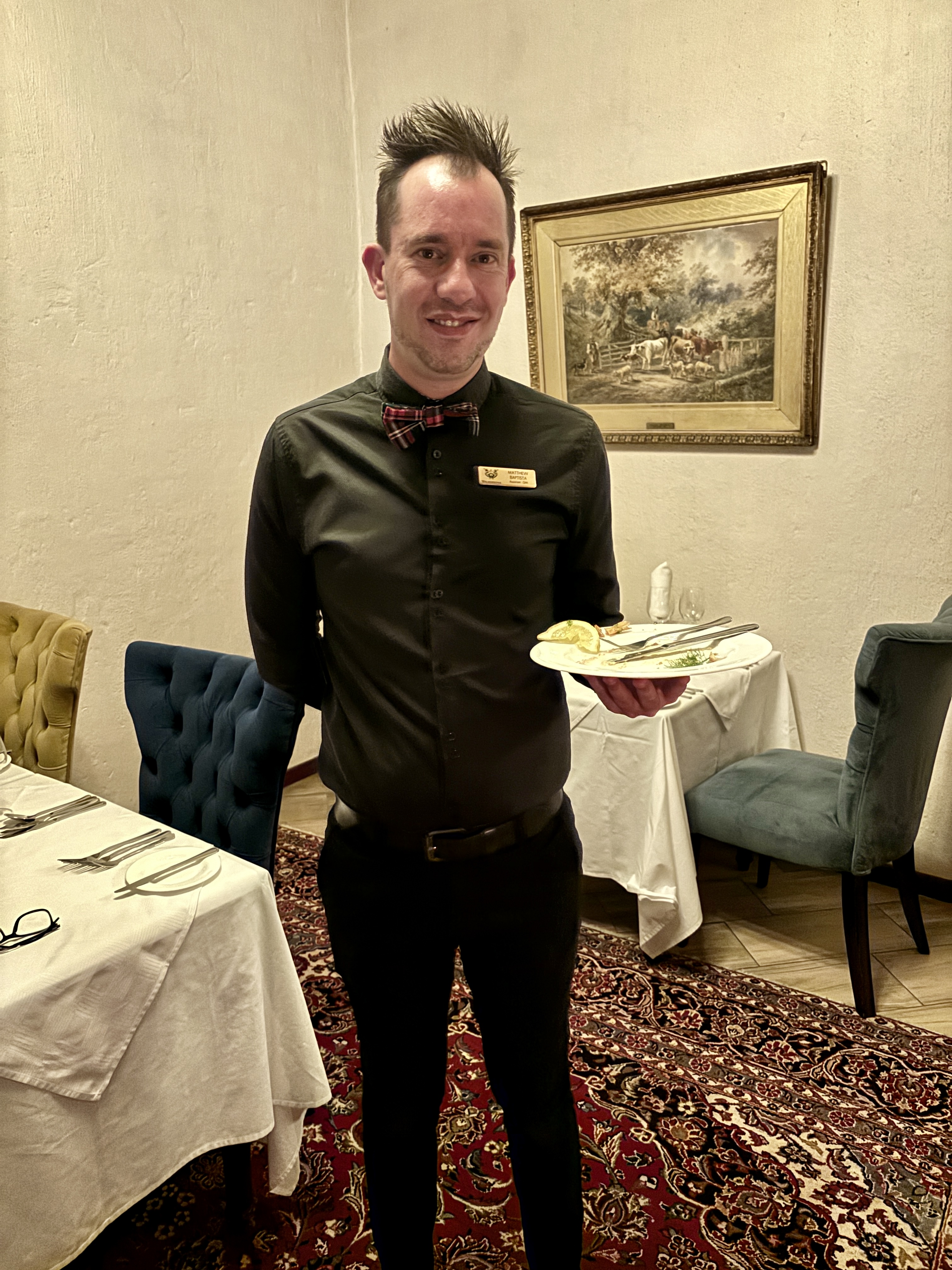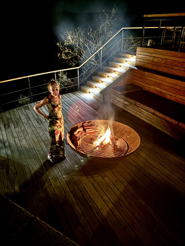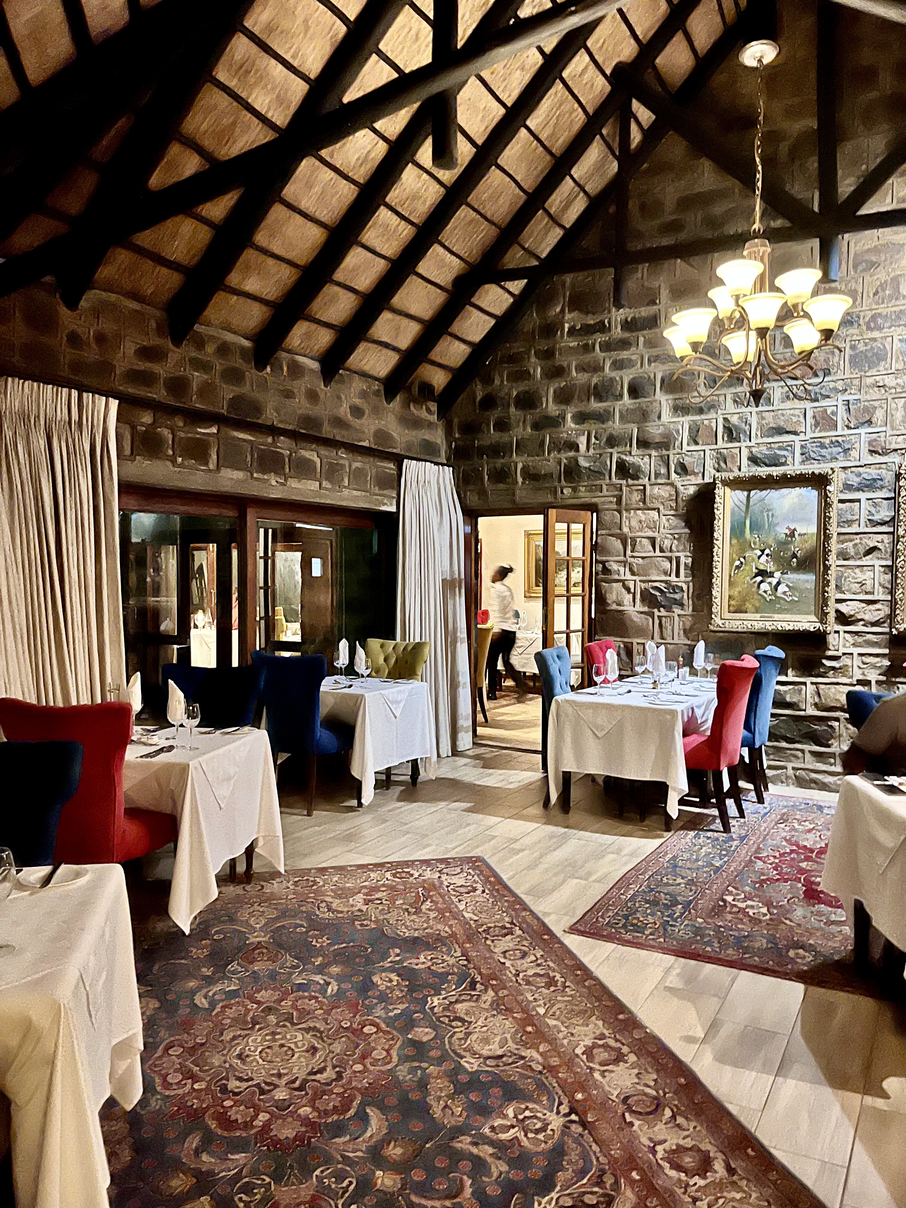 Die Cottages haben auch einen offenen Kamin und den brauchen wir, es ist nämlich reichlich frisch. Nachts liegt die Temperatur um die 8 Grad. Das Abendessen ist hervorragend und der Service hier ist es ebenso.