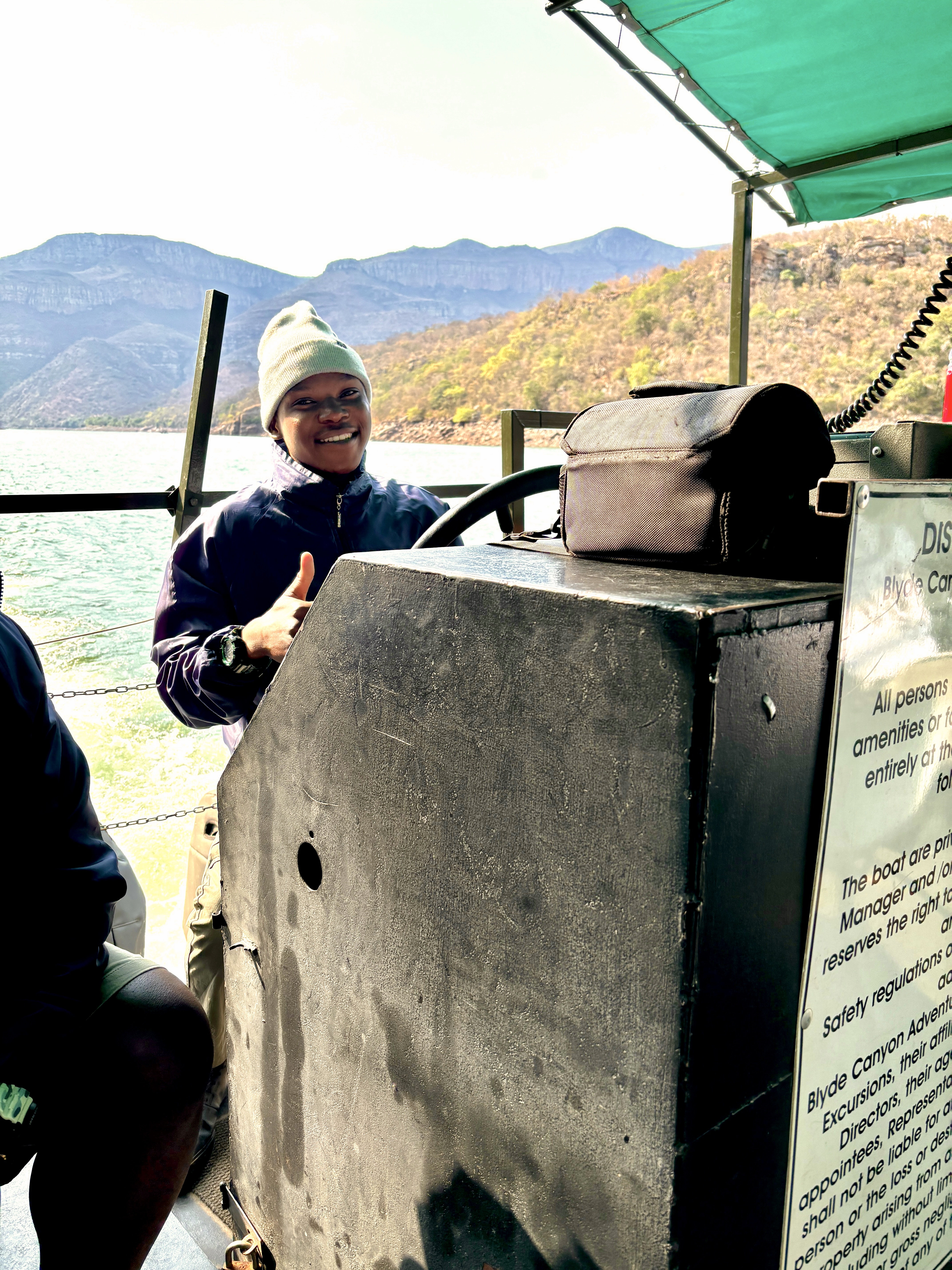 Vom Lodge ist es nicht weit zu einer Landungsstelle, von der wir mit einem Boot den Stausee und die bizarren Felsen entlang fahren.