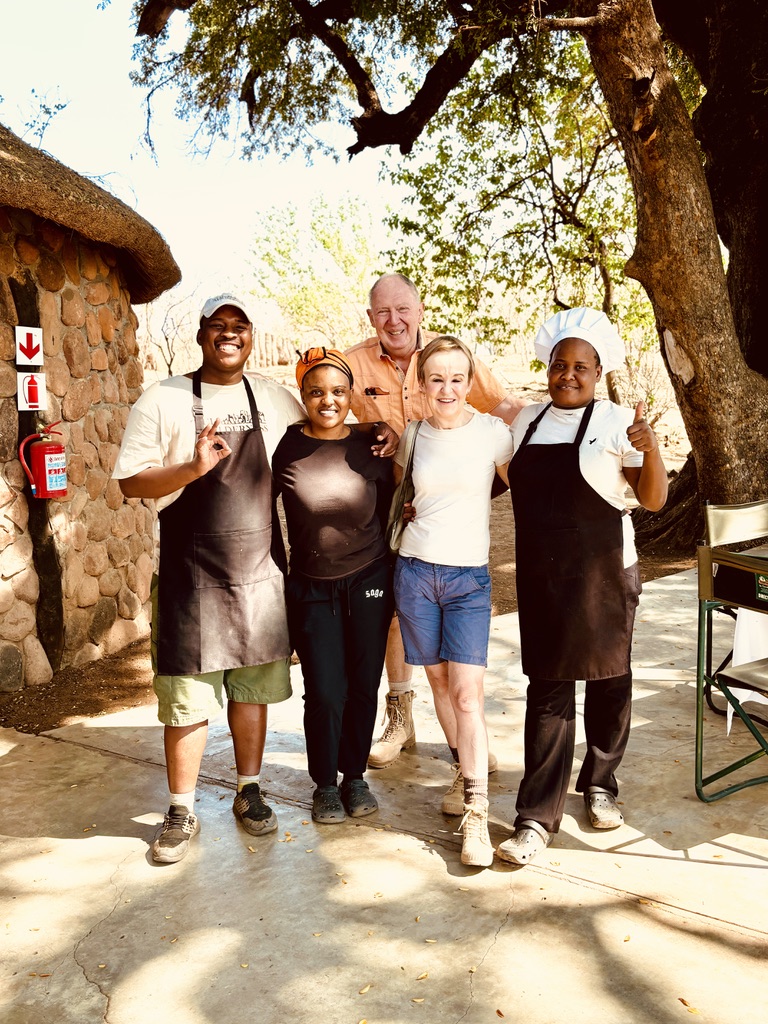 Ein Sundowner mit den Guides und den anderen Gästen macht den schönen Abend zu einem guten Abschluss für uns im Mopane Bush Lodge.